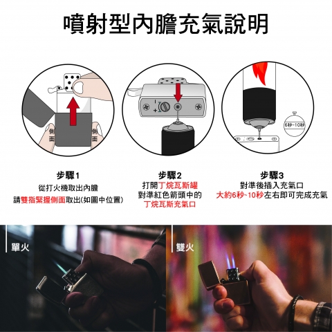 Butane Lighter Insert - Single Torch Specs: