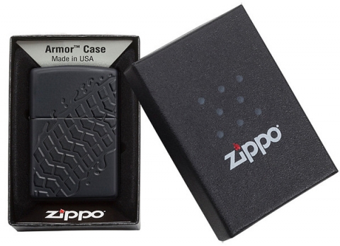 This Armor® Black Matte lighter is deep carved to create the impression of a rugged tire track. Comes packaged in a gift box. For optimal performance, fill with Zippo premium lighter fuel.