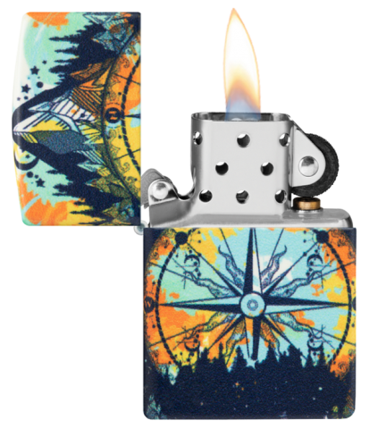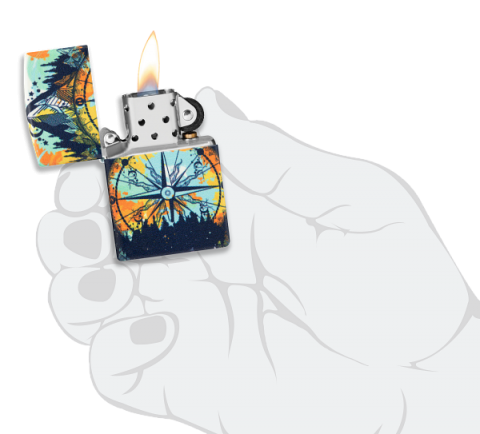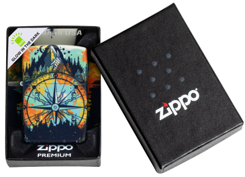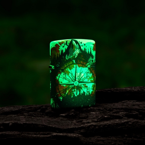 Ready for any adventure, this Zippo lighter is surrounded by a vibrant nature scene using our 540 Color process and gets a Glow-in-the-Dark finish - so even if you can't quite find your true north, at least you'll be able to find your lighter. Comes packaged in a gift box. For optimal performance, fill with Zippo lighter fuel.