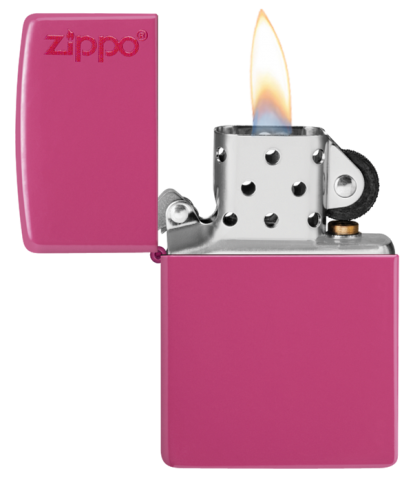 The impossible-to-miss hot pink finish on the Frequency lighter is sure to make an entrance wherever it goes. Adorned with the classic Zippo logo using our Color Image process. Comes packaged in a gift box. For optimal performance, fill with Zippo lighter fuel.