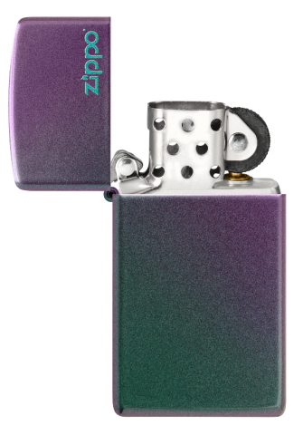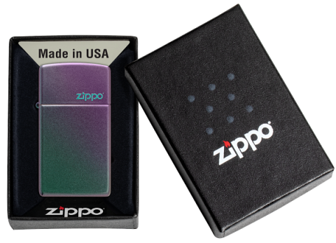 Zippo continues to bring unparalleled options in every color of the rainbow, and the new Slim® Iridescent model is no different. Gaze into the turquoise and violet ombre satin-like finish, which seems to change colors when seen from different angles. This Slim Iridescent lighter is adorned with the classic Zippo logo. Add this new luminous windproof lighter to your collection today. This lighter is also available in a Classic case. Comes packaged in Zippo's premium box. For optimal performance, fill with Zippo lighter fuel.