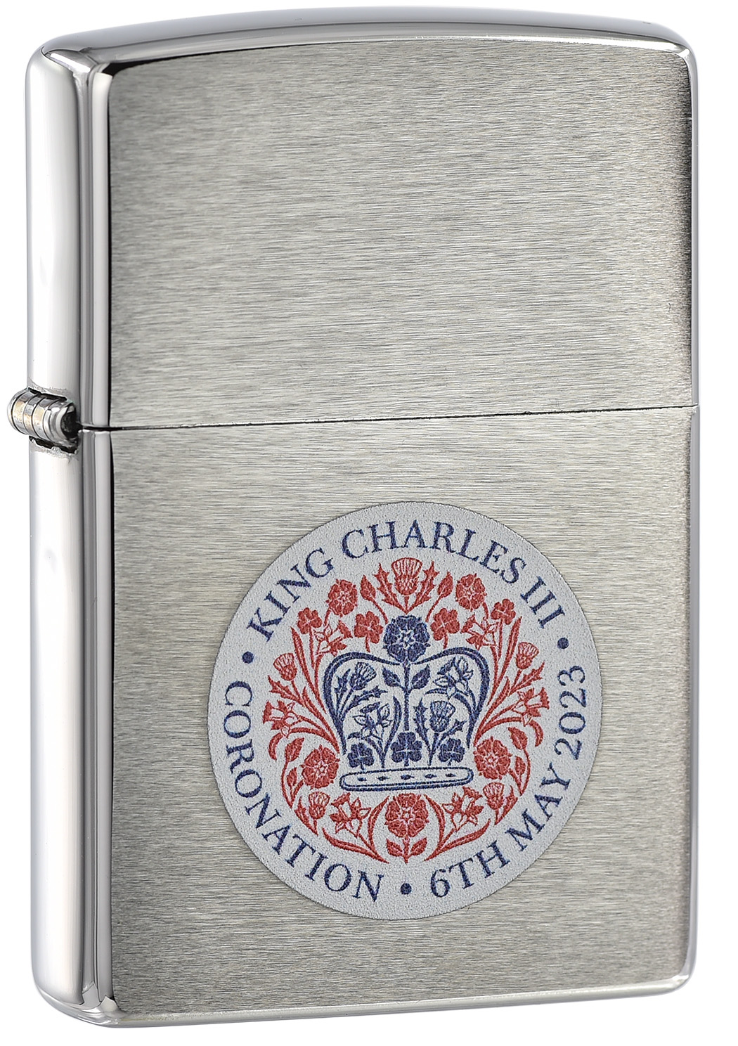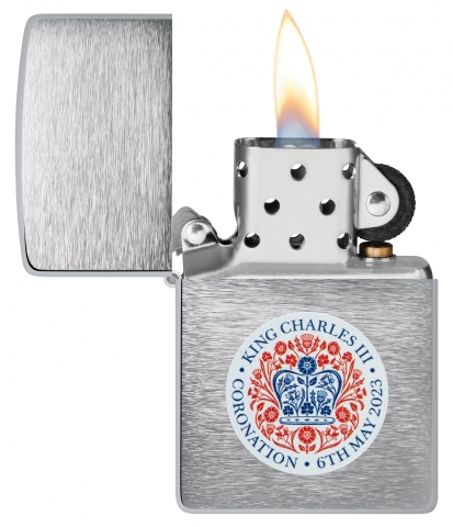 Celebrate the historic coronation of King Charles III with this commemorative Brushed Chrome lighter. The official coronation emblem appears on the lighter’s surface in a majestic Color Image design, which pays tribute to The King’s love of the natural world by unifying the flora of the four nations of the United Kingdom: the rose of England, the thistle of Scotland, the daffodil of Wales and the shamrock of Northern Ireland. Together, the flowers create the shape of St. Edward’s Crown, with which His Majesty The King will be crowned during the Coronation Service at Westminster Abbey on Saturday, 6th May 2023. For optimal performance, fill with Zippo lighter fuel.