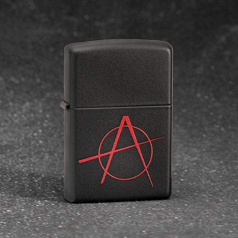 鮮紅與沈穩冷峻的黑形成鮮明對比,打火機手感細膩,不易留指紋,A代表了ANARCHISM,象徵著叛逆不羈和對自由、和諧、互助社會的追求。