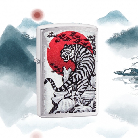 這種兇猛的老虎設計是使用彩色成像技術創造的。 在設計中,藝術家使用深色陰影和細緻的線條來創造逼真的老虎爬向血月,富貴財氣、上山猛虎。