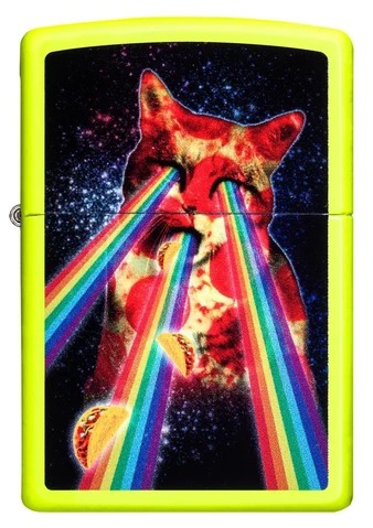 好厲害! 這種古怪的彩虹和披薩貓的設計不言而喻。 該設計在霓虹燈黃色打火機上進行彩色成像。 品名:披薩彩虹貓 型號:29614 材質:黃銅 規格:火機高度:57mm(±5%) 火機寬度:38mm(±5%) 火機厚度:13mm(±5%) 火機重量:81.65g(±5%) 產地:美國 ‧正品Zippo防風打火機,皆帶有獨特的Zippo“click”聲音 ‧防風設計幾乎適用於任何地方,材質堅固耐摔且保證能連續使用73000次以上 ‧美國製造,享有終身保修服務;為獲得最佳性能,建議使用Zippo原廠專用油、打火石及棉蕊 ‧Zippo打火機新品皆未含燃油,須另購原廠專用油