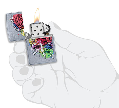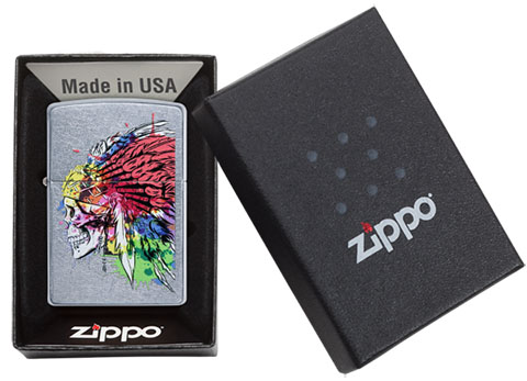 此款使用經典花紗表面並經由色彩成像技術,白色骷髏配戴著頭飾並設計顏料渲染的方式讓整體更具潮流風格。 品名:彩色頭飾骷髏 型號:49111 材質:黃銅 規格:火機高度:57mm(±5%) 火機寬度:38mm(±5%) 火機厚度:13mm(±5%) 火機重量:81.65g(±5%) 產地:美國 ‧正品Zippo防風打火機,皆帶有獨特的Zippo“click”聲音 ‧防風設計幾乎適用於任何地方,材質堅固耐摔且保證能連續使用73000次以上 ‧美國製造,享有終身保修服務;為獲得最佳性能,建議使用Zippo原廠專用油、打火石及棉蕊 ‧Zippo打火機新品皆未含燃油,須另購原廠專用油