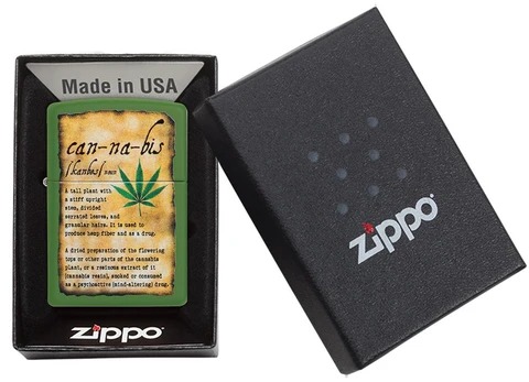 此款採用綠啞漆表面為底並透過色彩成像技術,印製上復古形象的大麻葉簡介書設計,展現獨有的特色。 品名:大麻葉簡介 型號:49119 材質:黃銅 規格:火機高度:57mm(±5%) 火機寬度:38mm(±5%) 火機厚度:13mm(±5%) 火機重量:81.65g(±5%) 產地:美國 ‧正品Zippo防風打火機,皆帶有獨特的Zippo“click”聲音 ‧防風設計幾乎適用於任何地方,材質堅固耐摔且保證能連續使用73000次以上 ‧美國製造,享有終身保修服務;為獲得最佳性能,建議使用Zippo原廠專用油、打火石及棉蕊 ‧Zippo打火機新品皆未含燃油,須另購原廠專用油