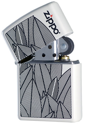 此款採用白色啞漆機身並透過色彩成像技術,彩噴上多道火焰紋路交叉在一起,右上角則有ZIPPO經典LOGO作為點綴,是一款非常耐看獨特的防風打火機。