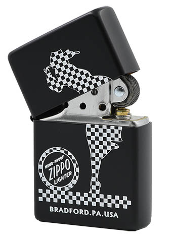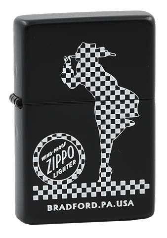 此款使用黑色啞漆機身並透過色彩成像技術,將棋盤風格的Zippo經典女郎設計上去,在黑白顏色明顯的對比下更彰顯經典風格。