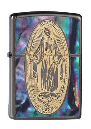 此款使用高拋光深黑色亮面機身,並在正面貼印上幻彩貝殼圖騰,正中間則是金色的聖母像,在不同的光線照射下會折射出不同的光澤。在背部底下的地方雷雕有Saint Mary的英文,慈悲的聖母瑪利亞散發著光芒庇護著所有人。