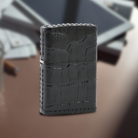 此款在外部加上鱷魚紋路真皮皮革,特殊的握感及黑色皮革外觀彰顯出高品質,值得您的收藏! 品名:鱷魚紋皮革(黑色) 型號:ZA-5-23A 材質:黃銅、牛皮 規格:火機高度:57mm(±5%) 火機寬度:38mm(±5%) 火機厚度:13mm(±5%) 火機重量:81.65g(±5%) 產地:美國 ‧正品Zippo防風打火機,皆帶有獨特的Zippo“click”聲音 ‧防風設計幾乎適用於任何地方,材質堅固耐摔且保證能連續使用73000次以上 ‧美國製造,享有終身保修服務;為獲得最佳性能,建議使用Zippo原廠專用油、打火石及棉蕊 ‧Zippo打火機新品皆未含燃油,須另購原廠專用油