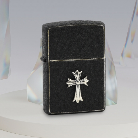 此款使用金屬黑色材質並經由特殊工藝處理形成類似大理石的紋路,並在正中間貼印上銀色的十字架,在顏色的對比下塑造出尊爵不凡的視覺感,每個人心中信仰都是神聖不可侵犯的。