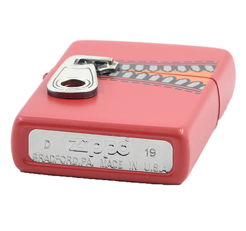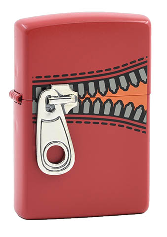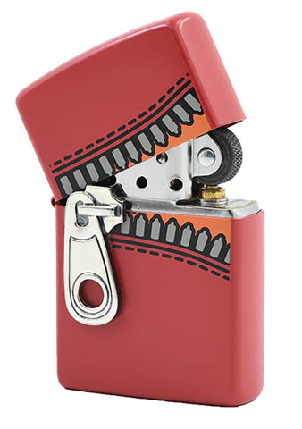 此款使用紅色啞漆表面並在上下蓋連接處透過彩噴技術,設計出拉鍊接合的圖片並加上立體拉鍊造型徽章,生動的樣子彷彿可以透過拉鍊將打火機給閉合起來。