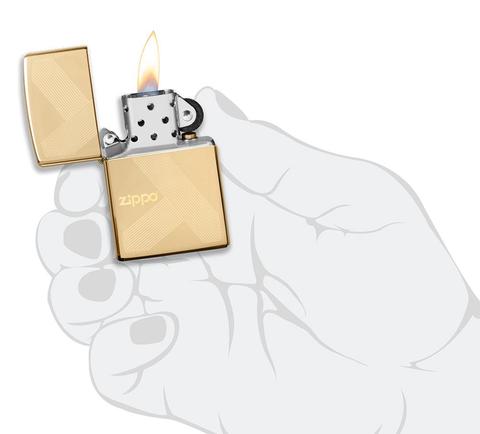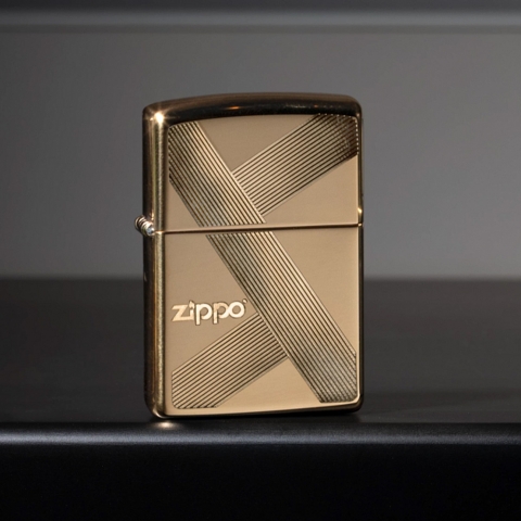 此款採用高拋光黃銅鏡面機身並透過細緻的雷射技術,設計出多條斜線交叉以及ZIPPO經典標誌,是一款簡約卻耀眼的防風打火機。