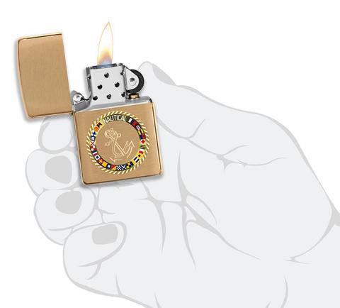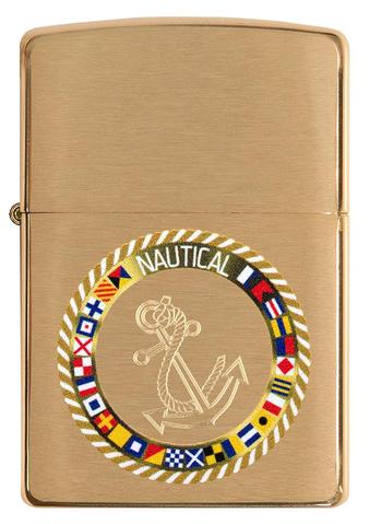 此款採用經典黃銅拉絲機身並在正面處使用2種工藝:雕刻、色彩成像,刻畫出經典的船錨圖案及各國國旗圍繞在旁邊,是航海迷不可錯過的一款打火機。