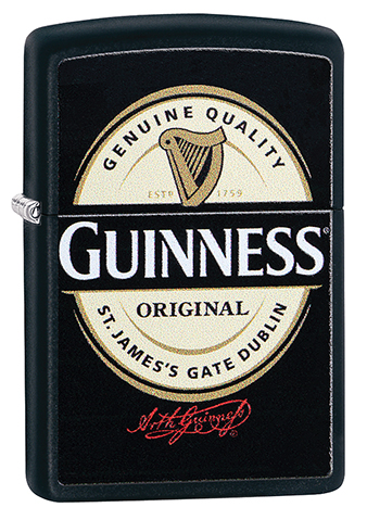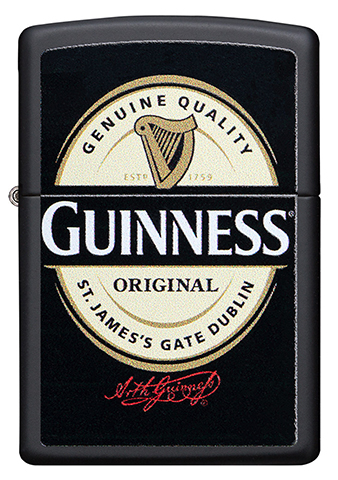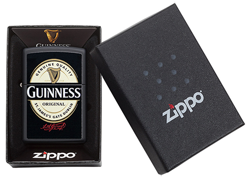 此款使用黑色啞漆機身並透過色彩成像技術,在正面處呈現健力士黑生啤酒品牌經典的徽章,透過黑色啞漆機身的色調強調黑生啤酒的特色。Zippo與Guinness品牌聯名,讓您深深感受到源自於1759年的原創經典。