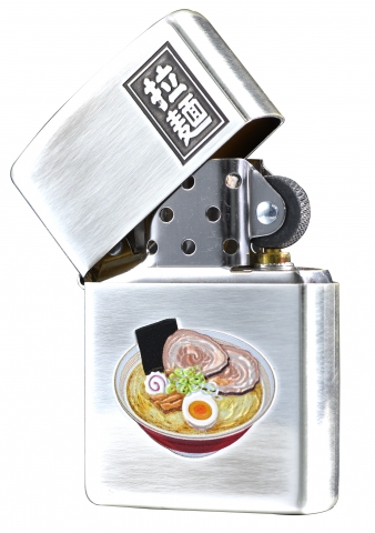 此款使用仿古銀機身並透過雕刻、色彩成像技術,將經典的日式拉麵呈現在正面處,右上角則刻畫上拉麵兩個字,是一款具有濃厚日式風格的防風打火機。