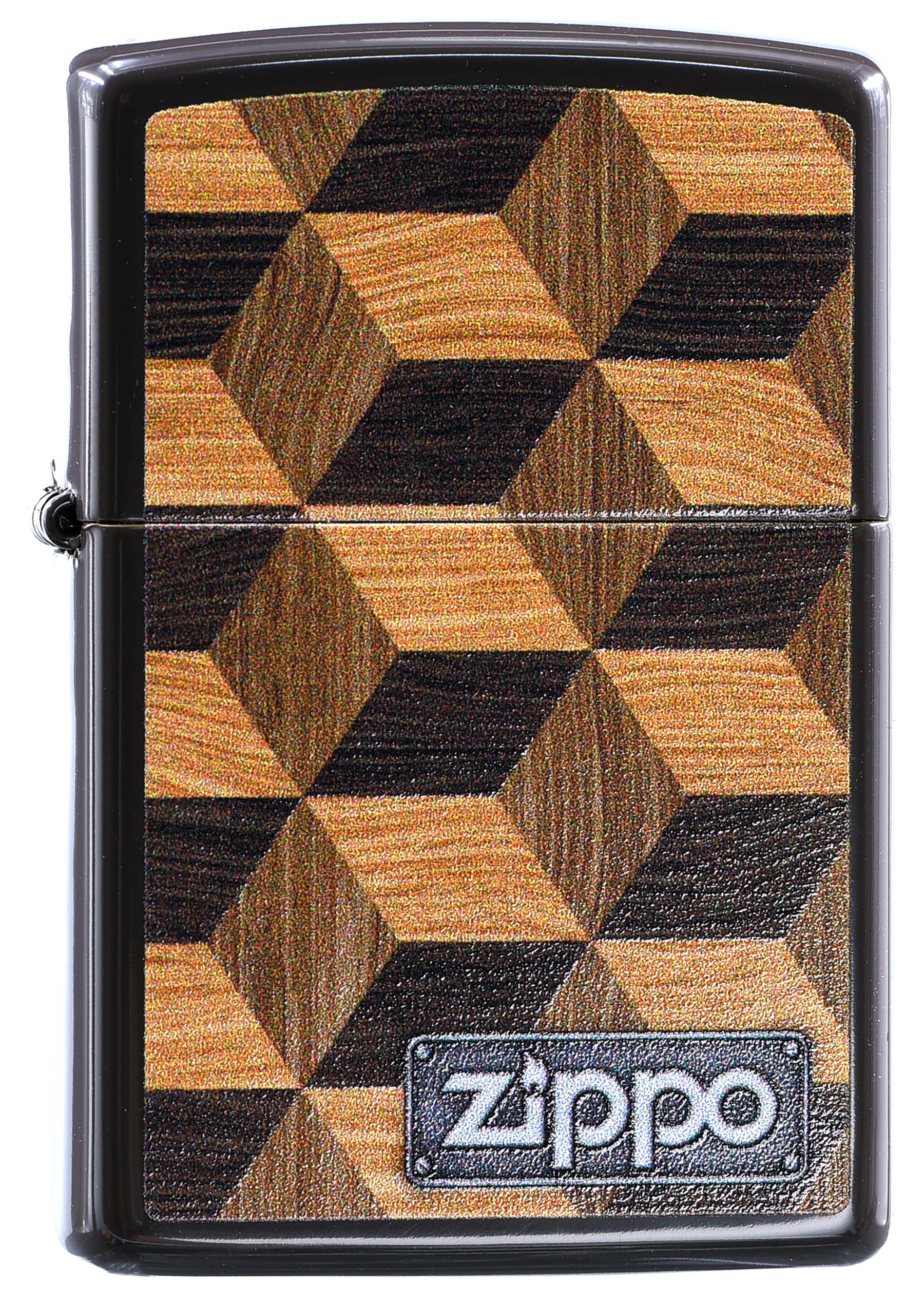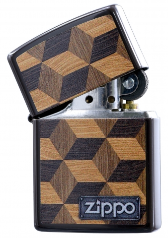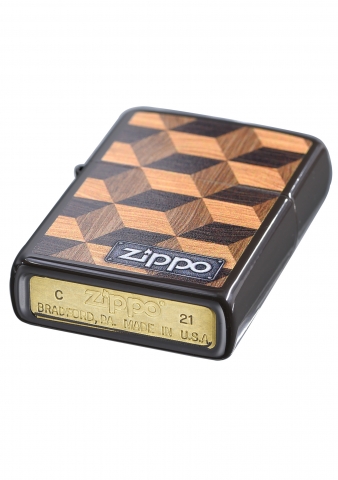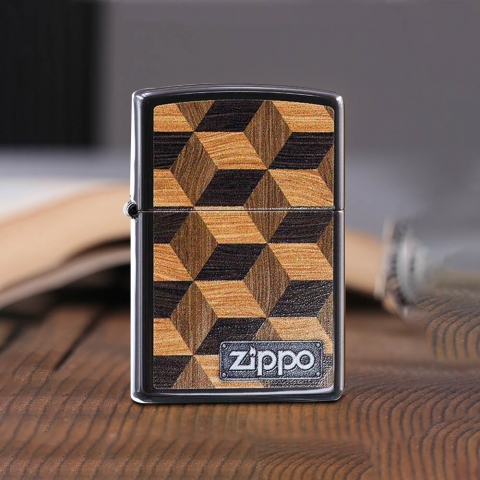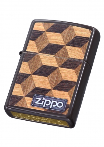此款採用經典棕色亮漆機身並透過色彩成像技術,將多個具有層次感的木紋方塊組合再一起,在右下角搭配上類似鐵牌風格的ZIPPO經典標誌,是一款視覺上有立體感的防風打火機。