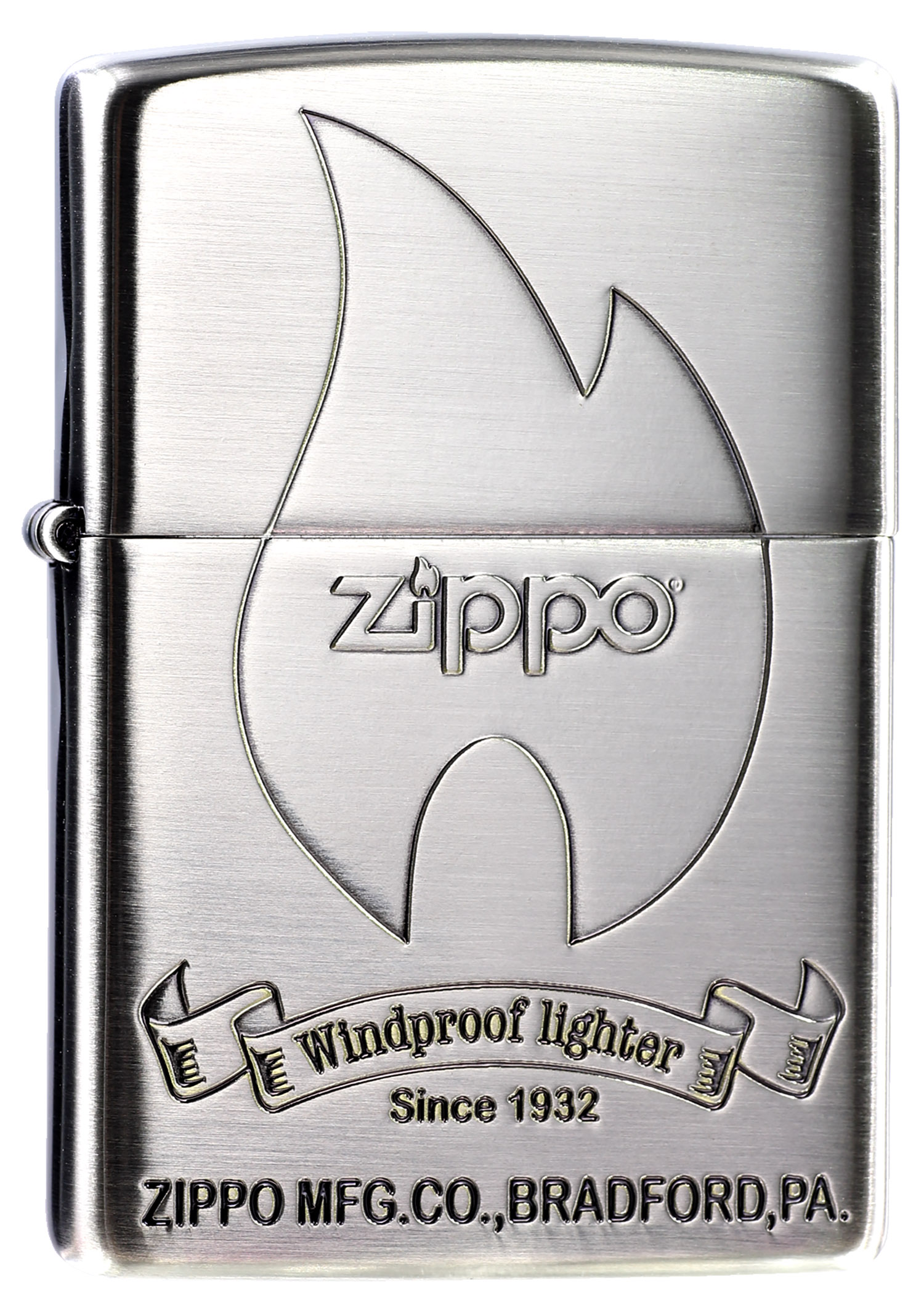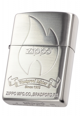 此款使用經典拉絲紋機身並透過精緻雕刻技術,在正面處雕刻上經典的ZIPPO火焰以及標誌,底部標示了著名產品-防風打火機、美國產地,整體機身透過特殊工藝使其更平滑。
