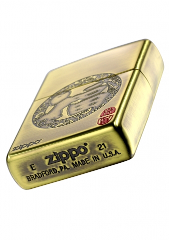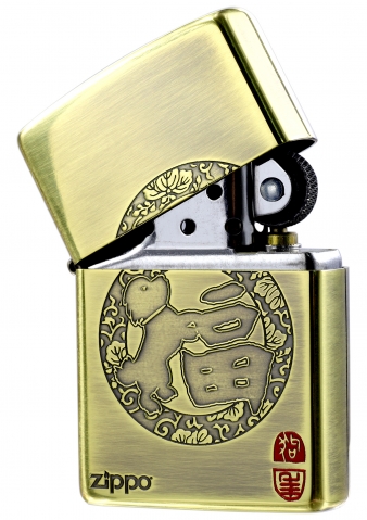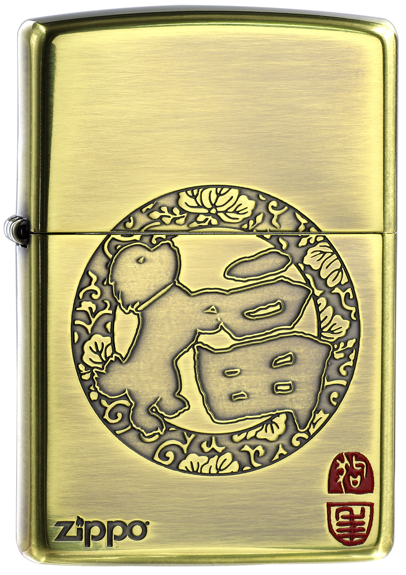 此款使用特殊工藝處理過的拉絲金紋路機身,並透過精緻雕刻及特殊上色在正面刻畫出可愛的福氣小狗,設計概念以小狗的圖案作為左邊部首右邊則為中文字。整體呈現了可愛與中國喜氣洋洋的風格,身為一個狗狗粉絲務必收藏此款打火機。