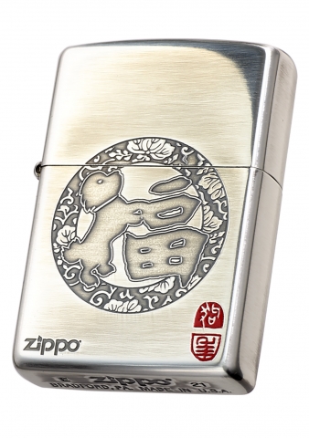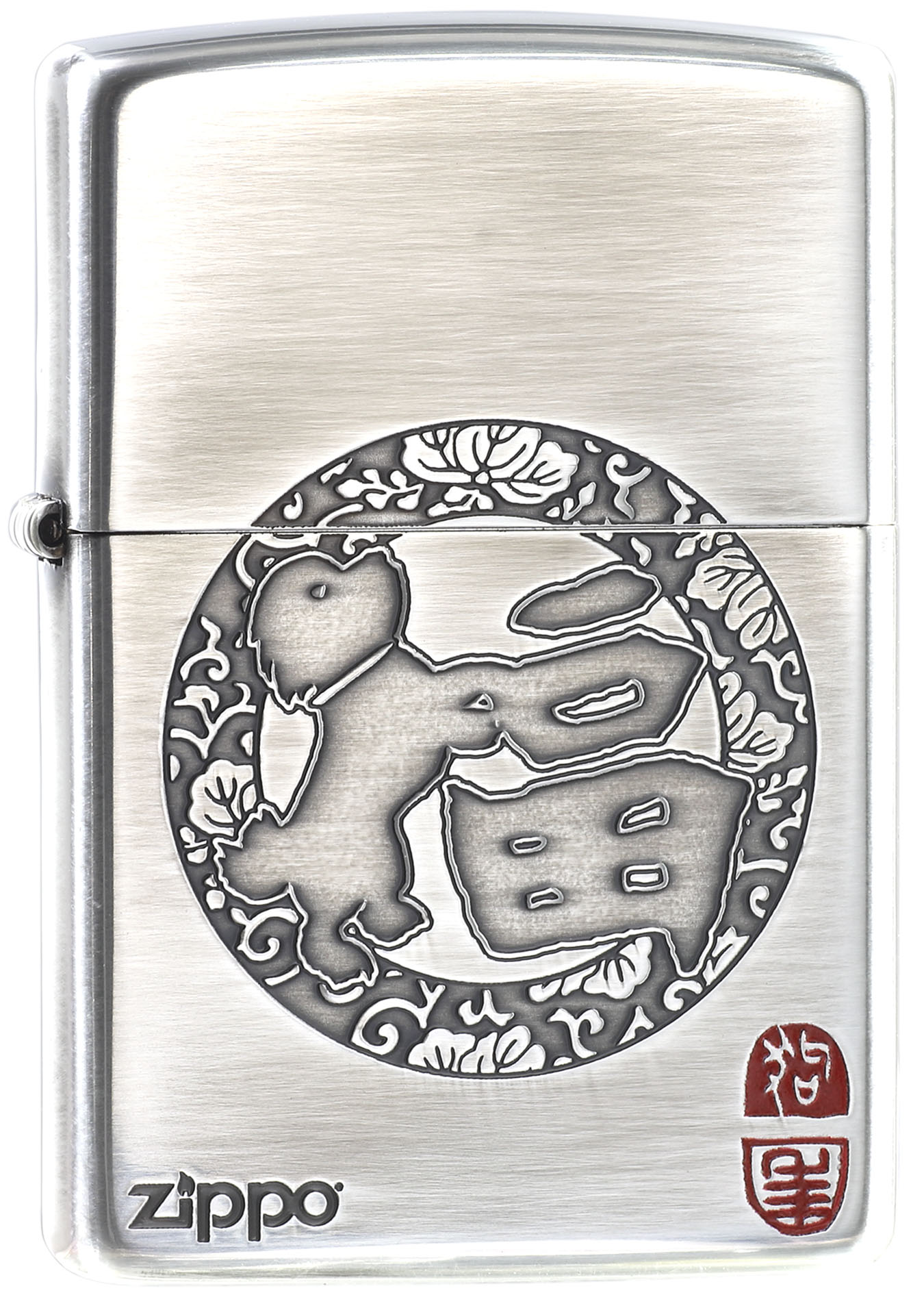 此款使用特殊工藝處理過的拉絲銀紋路機身,並透過精緻雕刻及特殊上色在正面刻畫出可愛的福氣小狗,設計概念以小狗的圖案作為左邊部首右邊則為中文字。整體呈現了可愛與中國喜氣洋洋的風格,身為一個狗狗粉絲務必收藏此款打火機。