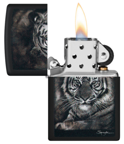 此款使用經典黑色啞漆機身並透過色彩成像技術,藉由世界著名的圖像技術大師Steven Spazuk通過將火焰保持在紙上並蝕刻成所產生的煙灰來創造夢幻而又非常清晰的圖像,將在黑暗深處的孟加拉虎的各個細節展現出來,彷彿在暗處等待獵物的到來,充滿兇猛卻又不失優雅。