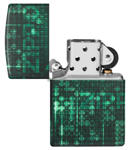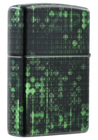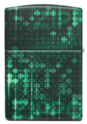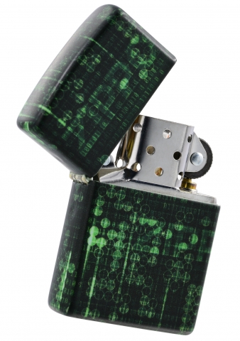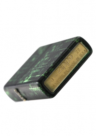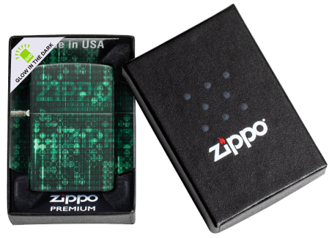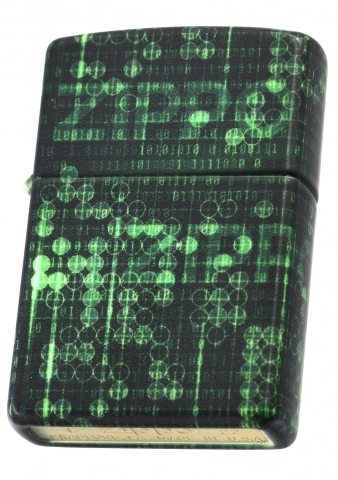 此款使用最新的螢光色漆機身,具有光滑平順且不容易沾指紋的特色,在黑暗之中會呈現出螢光色的光芒,是一款同時展現出2種截然不同特性的Zippo打火機。同時透過540色環繞彩噴工藝設計了由1與0所組成的數據世界背景還可以看到微微顯露出來的ZIPPO標誌。