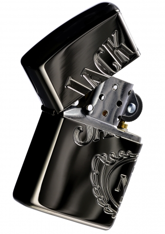 此款採用經典加厚版黑冰機身並透過360度深雕技術,從正面到背面處呈現經典傑克丹尼品牌標章設計,整體設計簡單卻又經典。