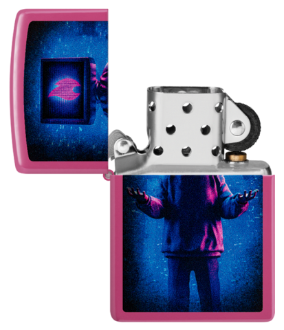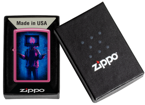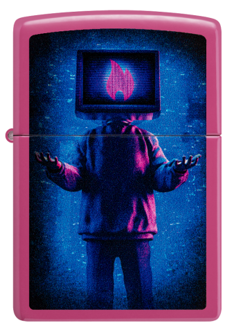此款使用粉紅色亮漆機身,具有光滑且不容易沾指紋的特色。並使用色彩成像技術,在打火機正面設計了電視人的模樣,電視畫面中展示著Zippo經典的火焰標誌。