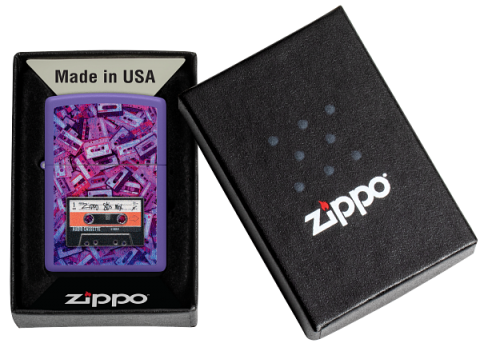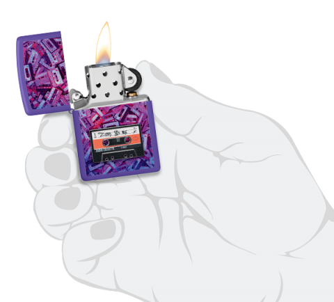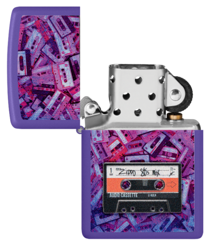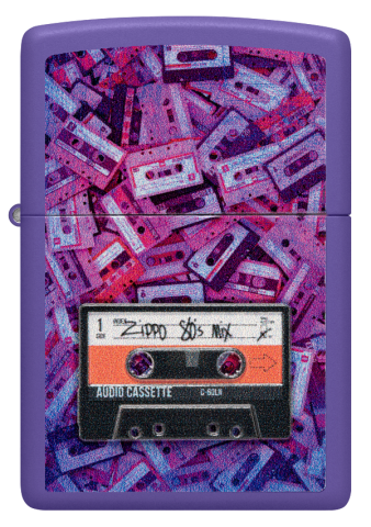 此款採用紫色啞漆表面,具有觸感滑順不容易沾指紋的特色。並使用色彩成像技術印上大量復古音樂卡帶堆積如山的情形。且於正面下蓋使用貼章技術,貼了寫有Zippo 80年代音樂組曲的卡帶。