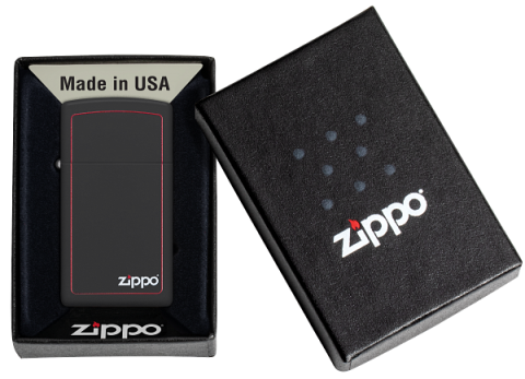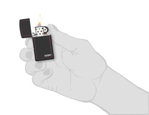 機身表面使用柔和細膩的噴塗啞漆工藝,手感細膩且不易留下指紋。打火機正面設計出簡單的紅色邊框並搭配經典的Zippo標誌,窄版機身同時更方便隨身攜帶。