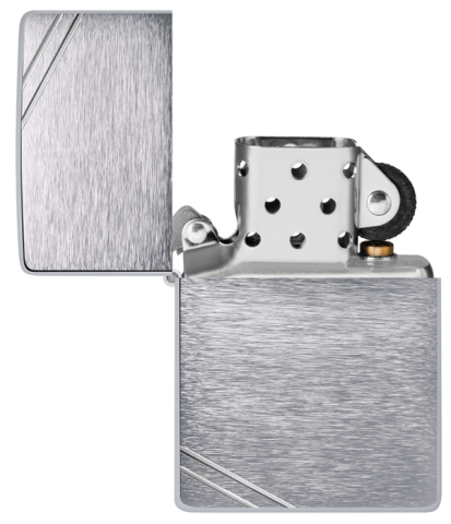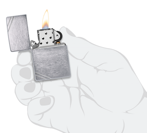 此款打火機有一個獨特的水準刷技術,這創造了一個在正反面微妙橫向紋理。側面則被打磨成高拋光面,以增加對比度,機身則採用復刻的直邊直角外型。
