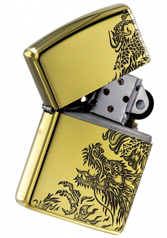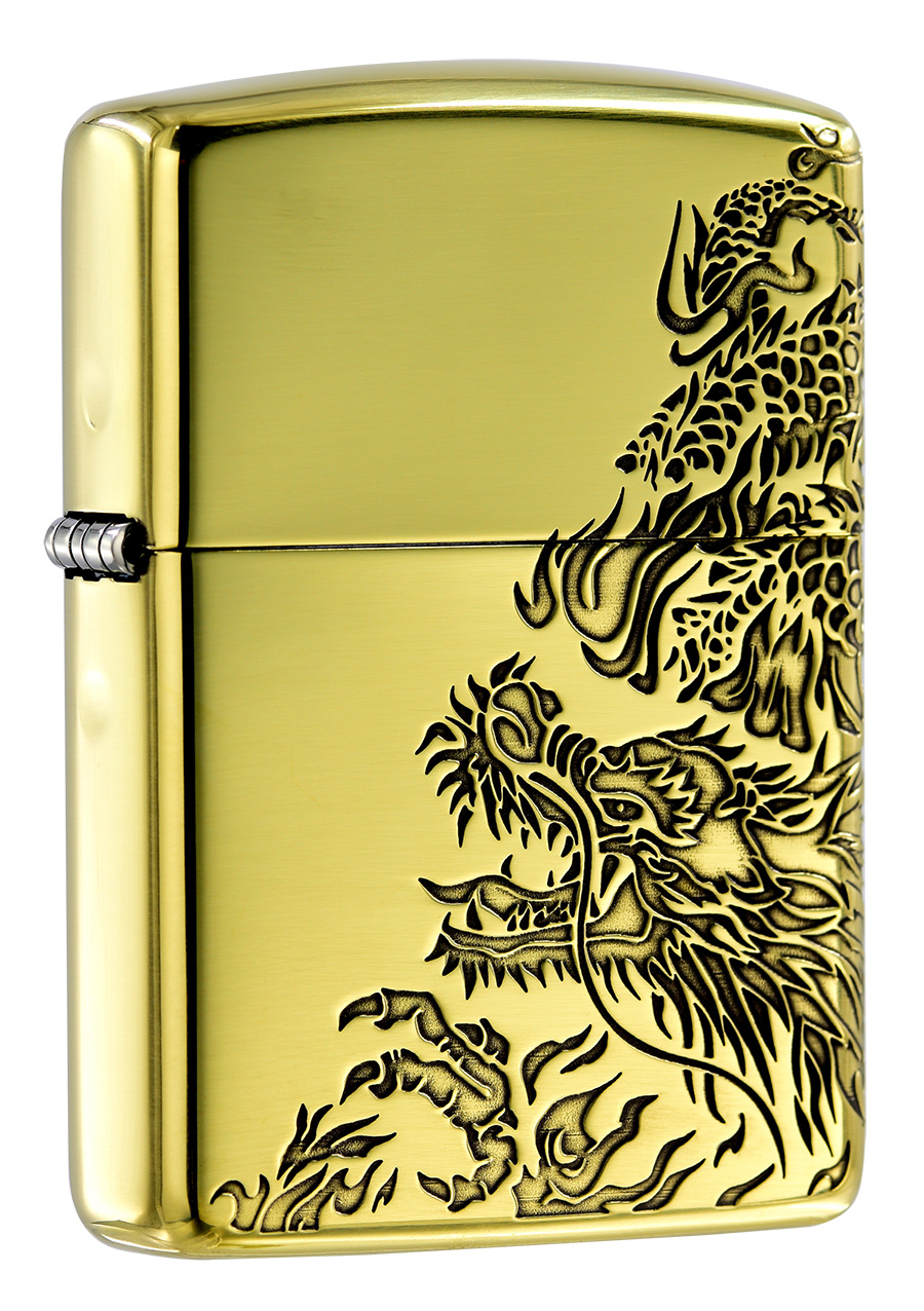 此款採用高拋光黃銅鏡面機身,並透過雕刻工藝從側面到正面雕刻出一條飛龍盤旋飛翔的姿態。雕刻工藝細緻將龍身上的鱗片展現的栩栩如生。