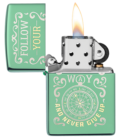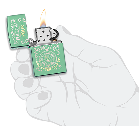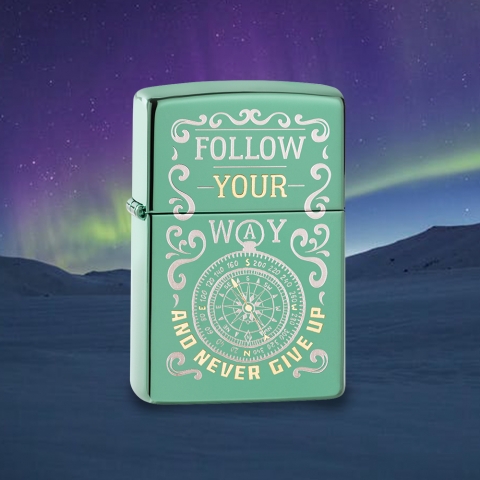 此款採用高拋光藍綠色機身並透過雙色雷射鵰刻,刻畫出波浪圖騰、指南針以及英文字。代表了創造自己的路、而且永不放棄!機身上的指南針代表著在旅途中不會迷失方向,最適合充滿冒險心的您來擁有。