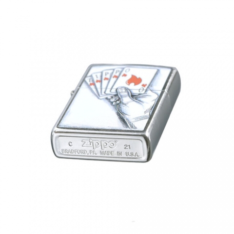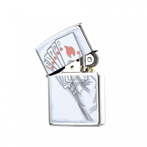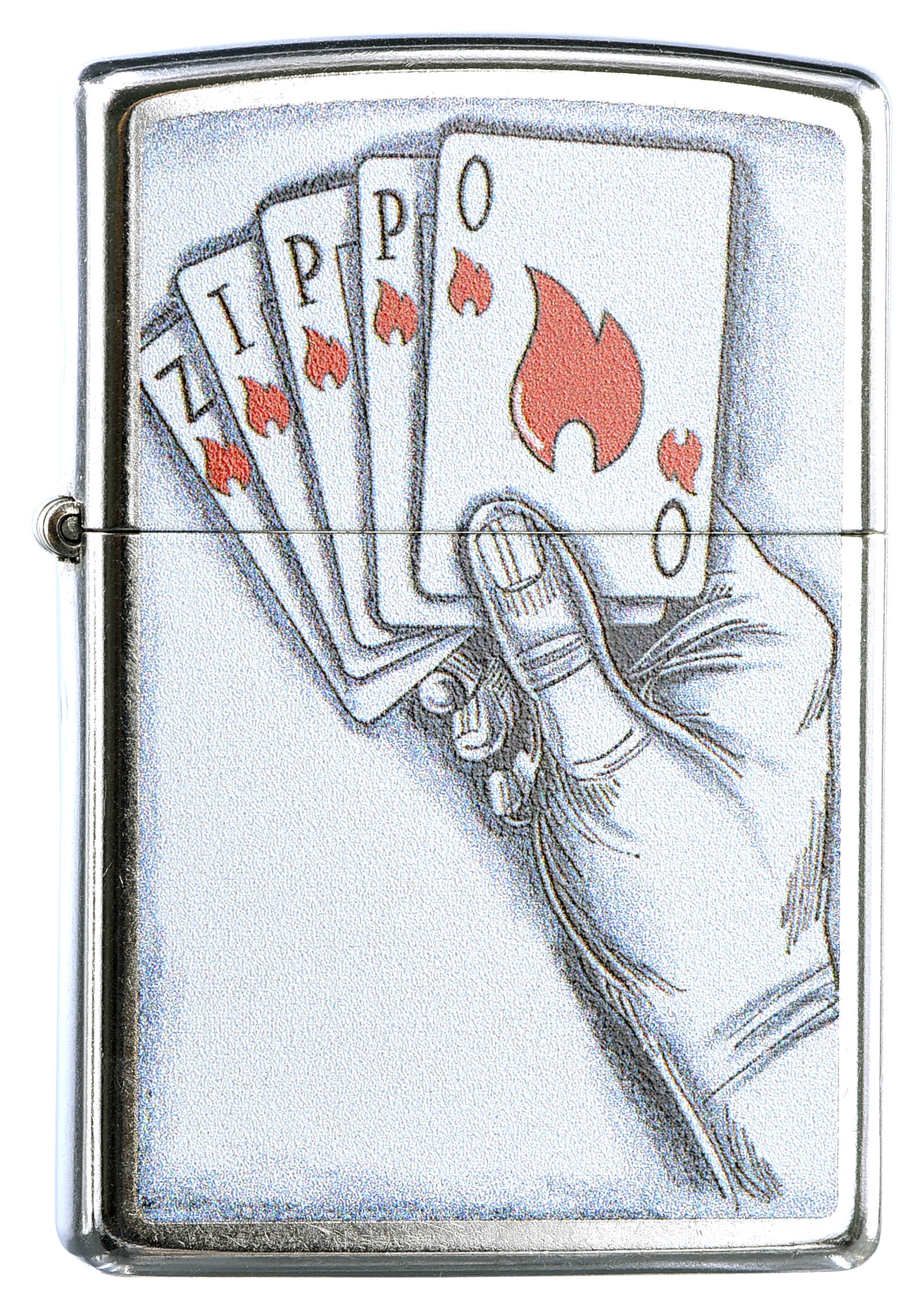 此款採用經典花紗機身並透過色彩成像技術,在正面處設計上了手握5張牌,從左到右拼湊起來就是ZIPPO的字樣,象徵手上拿了一手好牌。