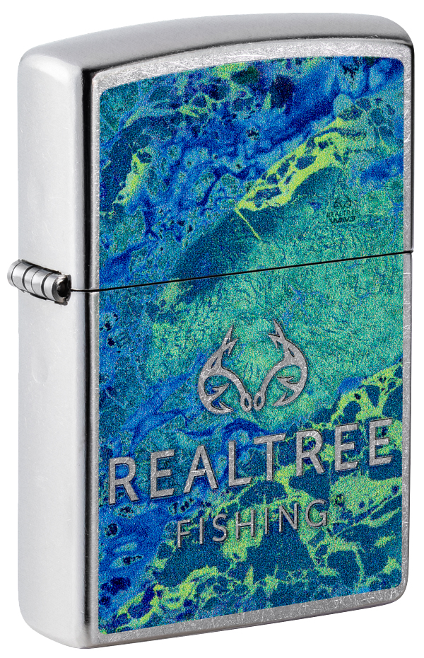 此款採用經典花紗機身。正面圖案使用色彩成像技術,與Real Tree 品牌聯名推出。在正面呈現海底海床藍藍綠綠充滿生機的模樣。並透過留白留空的方式將 Real Tree的品牌LOGO與品牌名稱呈現出來。