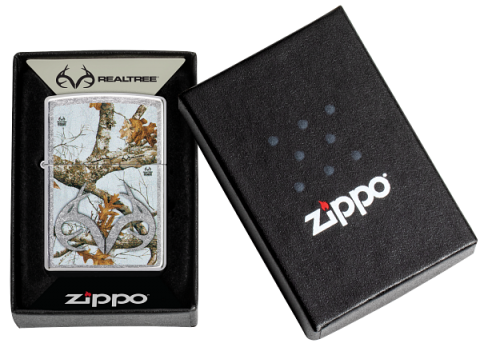 此款採用經典花紗機身。正面圖案使用色彩成像技術,與Real Tree 品牌聯名推出。在正面呈現一棵真實枯木葉片泛黃凋零的模樣。並透過留白留空的方式將 Real Tree的品牌LOGO呈現出來。