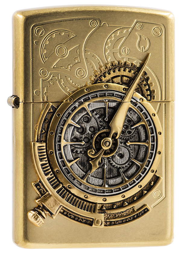 此款整個表面,包括側面和底部,皆用一種特殊的介質中滾動打磨,具有隨意的“仿舊”外觀。正面採用雕刻技術設計了一些蒸氣龐克風格的齒輪圖形,搭配上貼章技術將整個蒸氣龐克風格的齒輪懷錶呈現出來。簡單又精緻展現蒸氣龐克的獨特魅力。