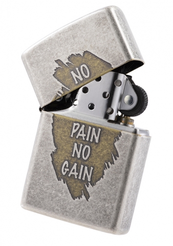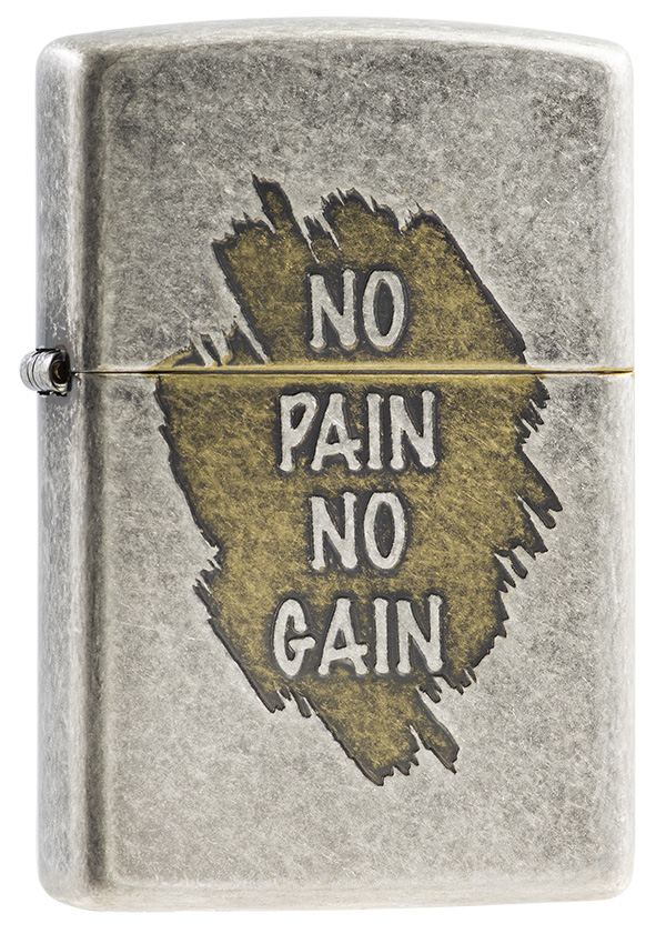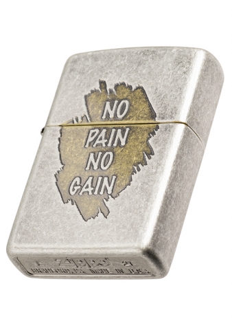 此款採用仿古銀色飾面並在表面色調上使用了帶有滄桑感的古銀質感,簡約內斂、獨具男性魅力。觸感順手不易沾指紋且耐用不容易受侵蝕。在正面採用特殊蝕刻技術,將英文諺語 NO PAIN NO GAIN 呈現出來,意味著在這世界上一分耕耘、一分收獲,無勞則無獲。