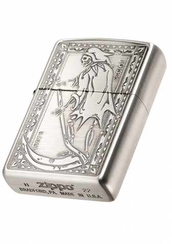 此款使用仿古銀機身並透過雕刻技術,將經典的撲克牌的鬼牌形象設計在打火機正面。 品名:撲克牌 - 鬼牌設計 型號:ZA-3-151C 材質:黃銅 規格:火機高度:57mm(±5%) 火機寬度:38mm(±5%) 火機厚度:13mm(±5%) 火機重量:81.65g(±5%) 產地:美國 ‧正品Zippo防風打火機,皆帶有獨特的Zippo“click”聲音 ‧防風設計幾乎適用於任何地方,材質堅固耐摔且保證能連續使用73000次以上 ‧美國製造,享有終身保修服務;為獲得最佳性能,建議使用Zippo原廠專用油、打火石及棉蕊 ‧Zippo打火機新品皆未含燃油,須另購原廠專用油