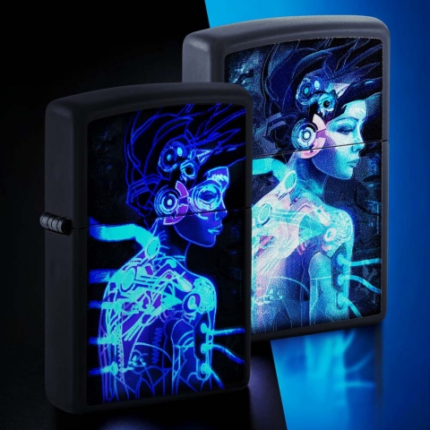 此款採用最新的黑色夜光設計,此款技術是使用一種特殊配方的墨水,將這種墨水應用於彩色圖像藝術的特定區域,使其暴露在紫外線下會產生出藍色的光芒。充滿未來科技感女性改造人,透過黑色夜光技術再散發藍光之下更加充滿科技感!
