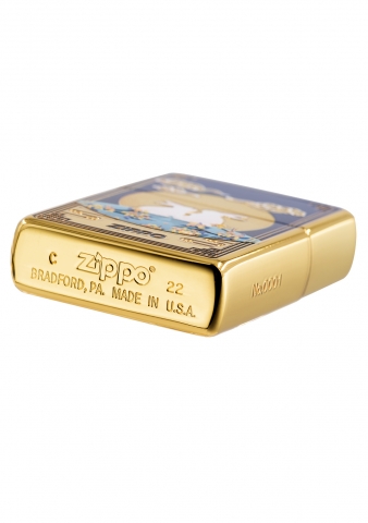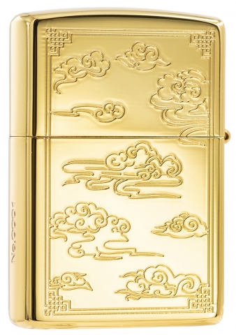本款打火機採用高拋光金色機身,採用蝕刻技術刻出正反面的傳統圖案,