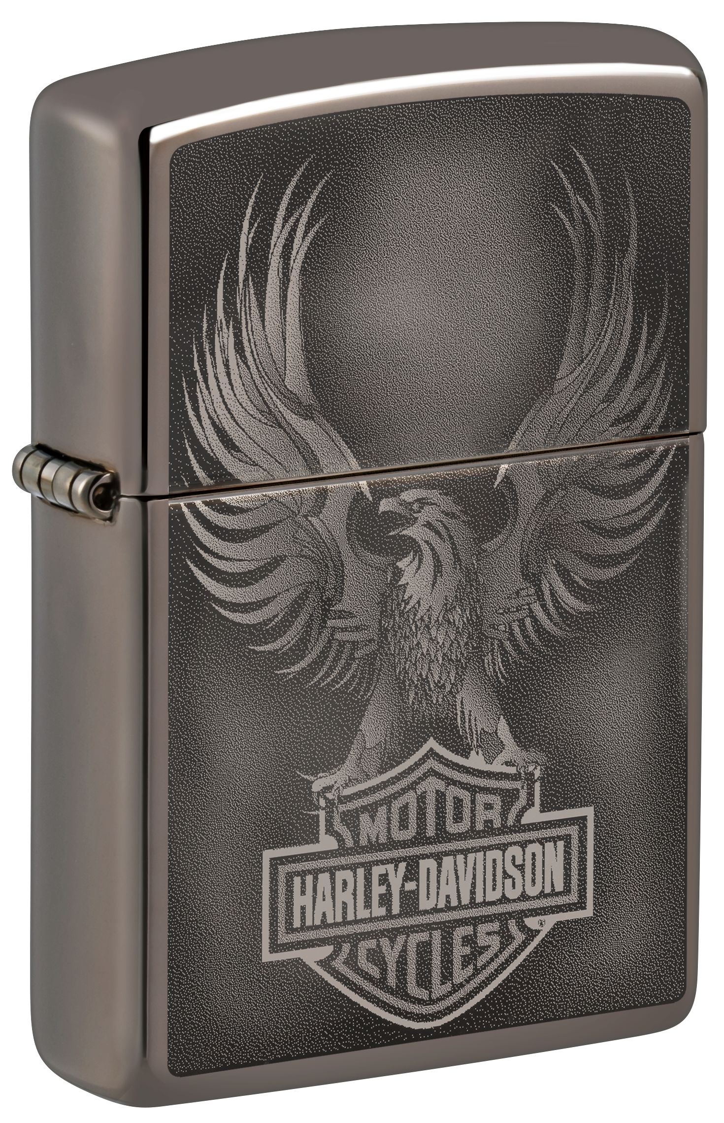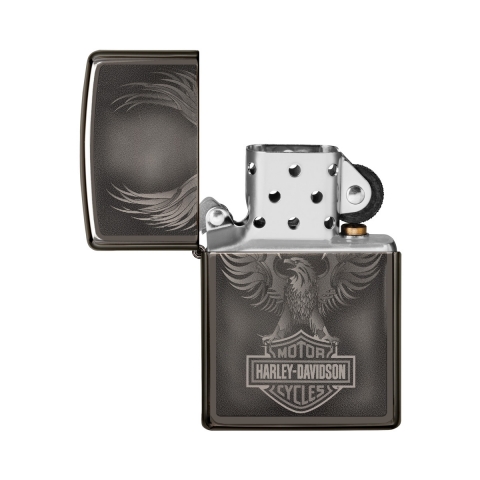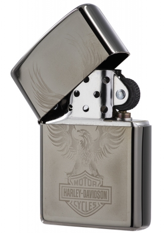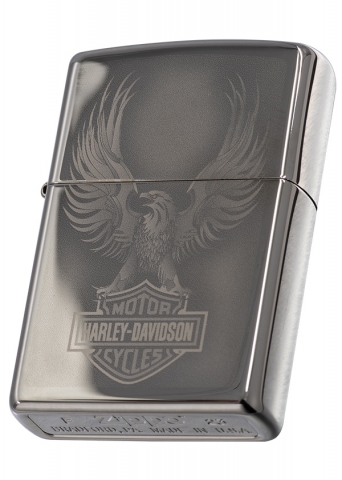 此款使用黑冰機身並在正面利用照片成像技術,設計出一隻鷹展翅翱翔的樣貌,同時搭配歷史悠久的哈雷標誌。