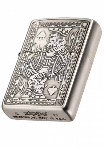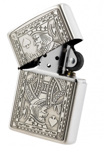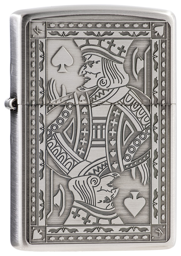 此款使用仿古銀機身並透過雕刻技術,將經典的撲克牌的國王形象設計在打火機正面。 品名:撲克牌-國王設計 型號:ZA-3-151A 材質:黃銅 規格:火機高度:57mm(±5%) 火機寬度:38mm(±5%) 火機厚度:13mm(±5%) 火機重量:81.65g(±5%) 產地:美國 ‧正品Zippo防風打火機,皆帶有獨特的Zippo“click”聲音 ‧防風設計幾乎適用於任何地方,材質堅固耐摔且保證能連續使用73000次以上 ‧美國製造,享有終身保修服務;為獲得最佳性能,建議使用Zippo原廠專用油、打火石及棉蕊 ‧Zippo打火機新品皆未含燃油,須另購原廠專用油