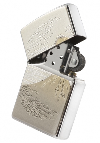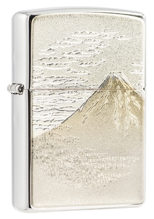 此款採用經典髮絲紋機身並在正面使用貼印技術,將從遠處眺望富士山的絕麗風景刻劃出來,細緻精美的雕刻紋路以及顏色,將日本傳統風格的美呈現出來。