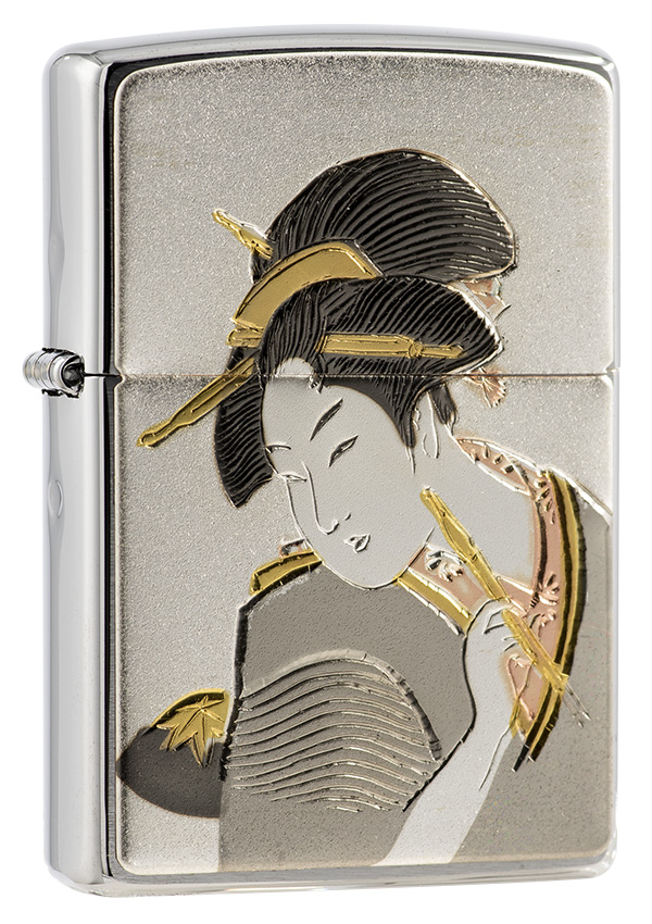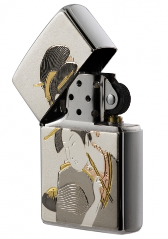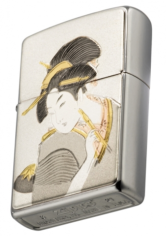 此款採用經典髮絲紋機身並在正面使用貼印技術,將浮世繪風格的女子提筆而書的姿態刻劃出來,細緻精美的雕刻紋路以及顏色,將日本傳統風格的美呈現出來。