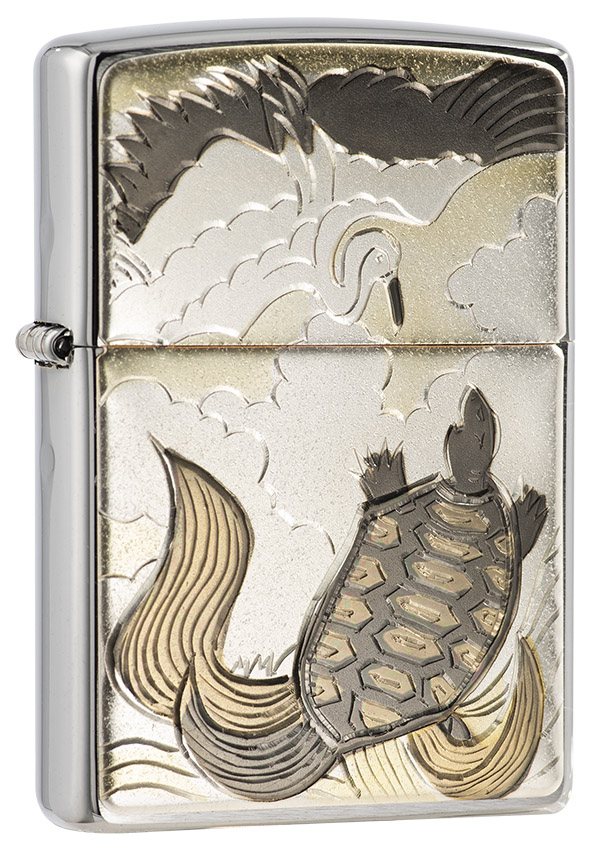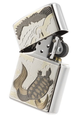 此款採用經典髮絲紋機身並在正面使用貼印技術,將鶴與龜互相爭鬥的姿態刻劃出來,細緻精美的雕刻紋路以及顏色,將日本傳統風格的美呈現出來。