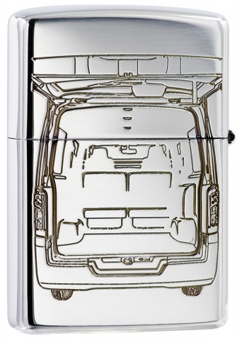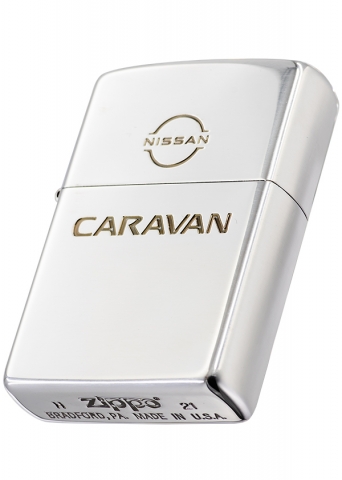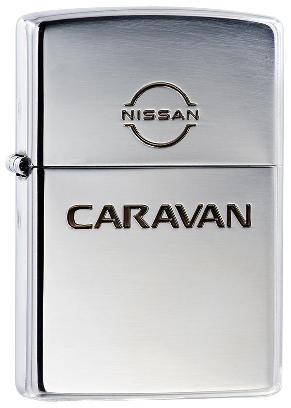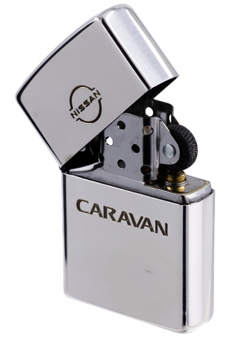 此款防風打火機,透過雷射雕刻技術,在高拋光的經典機身上刻下NISSAN與經典的CARAVAN商用旅行車系列標誌,並在打火機背面刻上商用旅行車後掀蓋掀開的樣貌。
