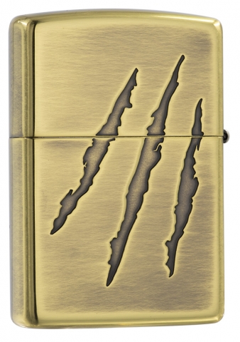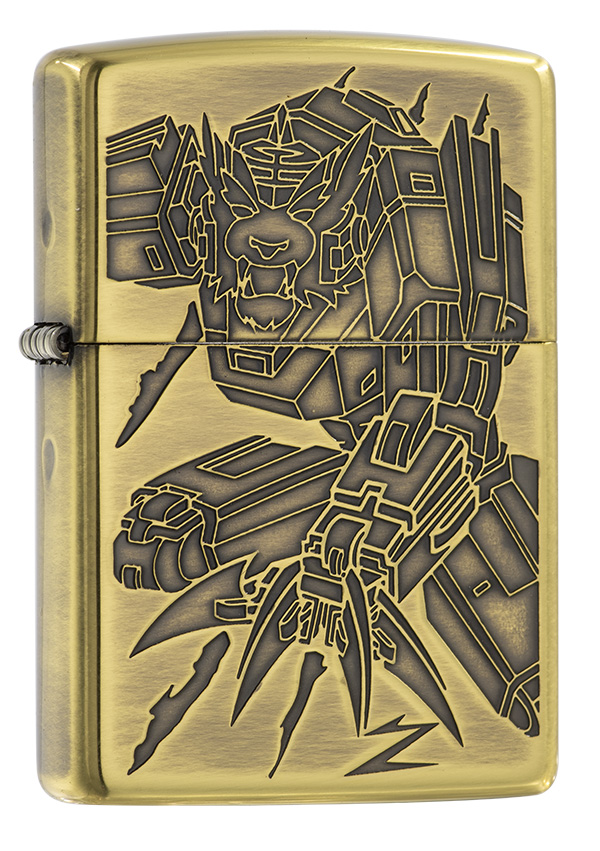 獨具品味的12生肖打火機,以亮面黃銅拉絲紋路製成外殼,正面雕刻著老虎機甲型態,搭配ZIPPO獨特Z草寫小圖字,背面則呈現虎爪刻痕特徵。