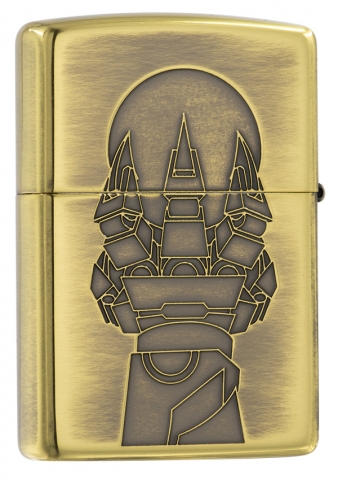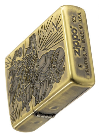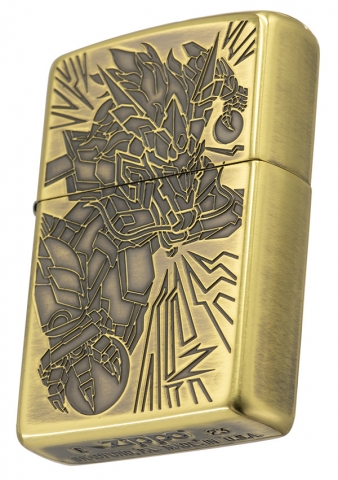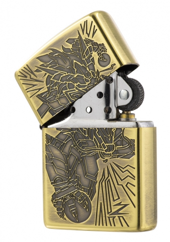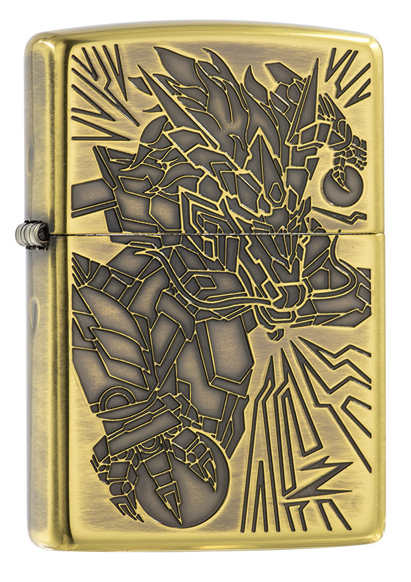 獨具品味的12生肖打火機,以亮面黃銅拉絲紋路製成外殼,正面雕刻著龍機甲型態,搭配ZIPPO獨特Z草寫小圖字,背面則呈現手持龍珠特徵。